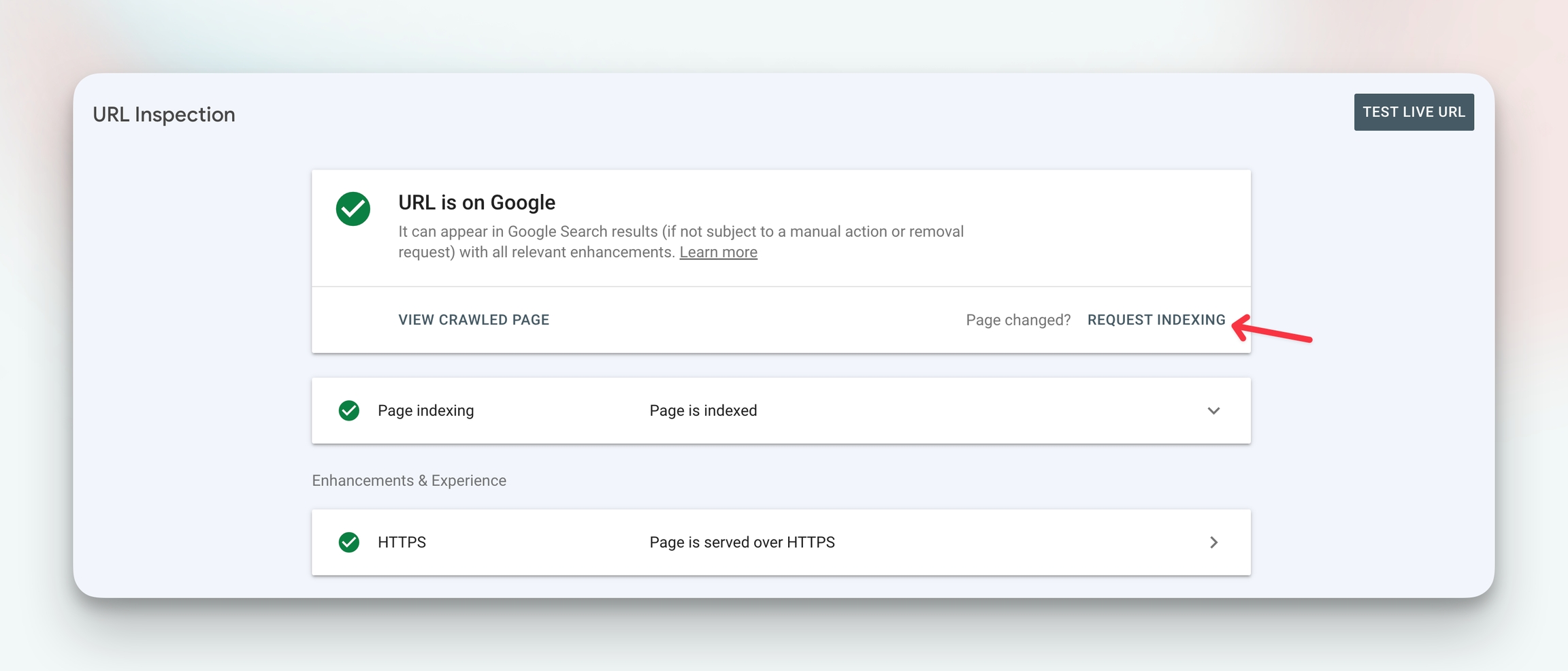 5. Click on the request indexing button.